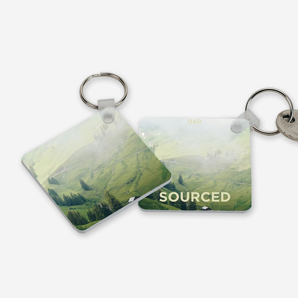 Produzido em acrílico resistente, este porta-chaves combina leveza e durabilidade. A personalização é feita por sublimação térmica nos dois lados, garantindo cores vivas e detalhes nítidos.